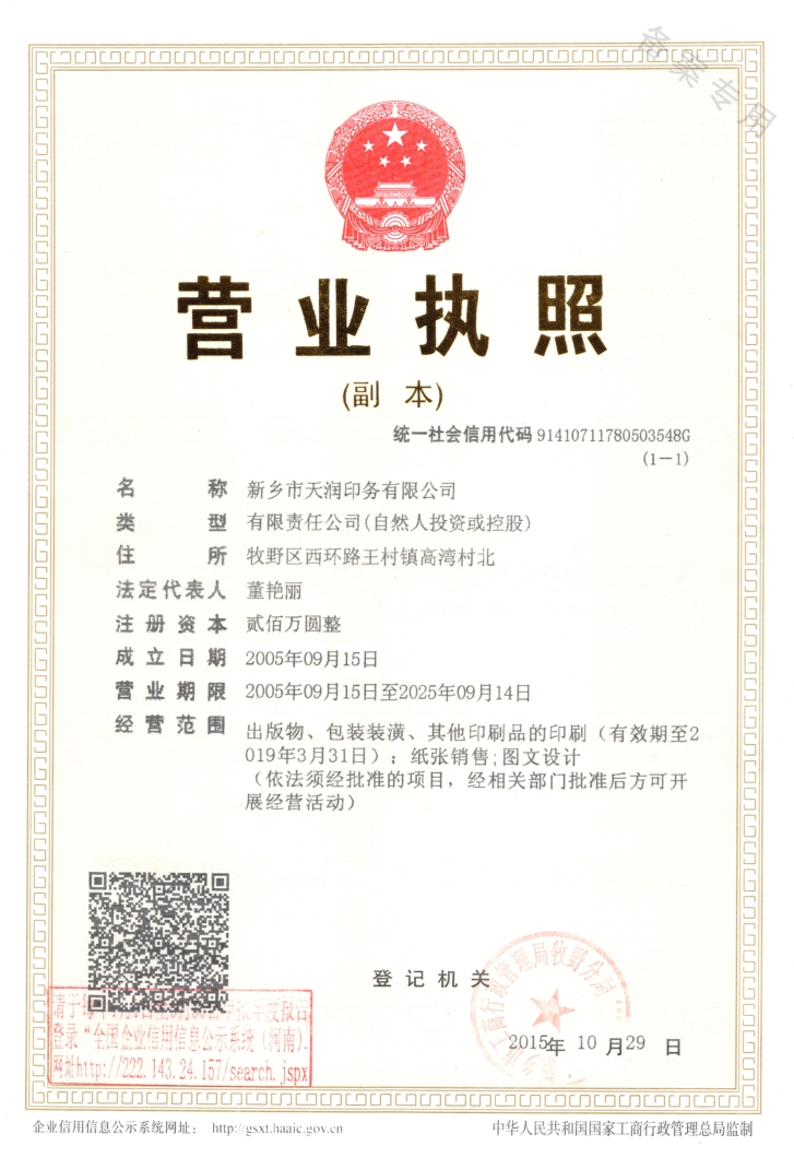 Xinxiang tianrun printing co. LTD